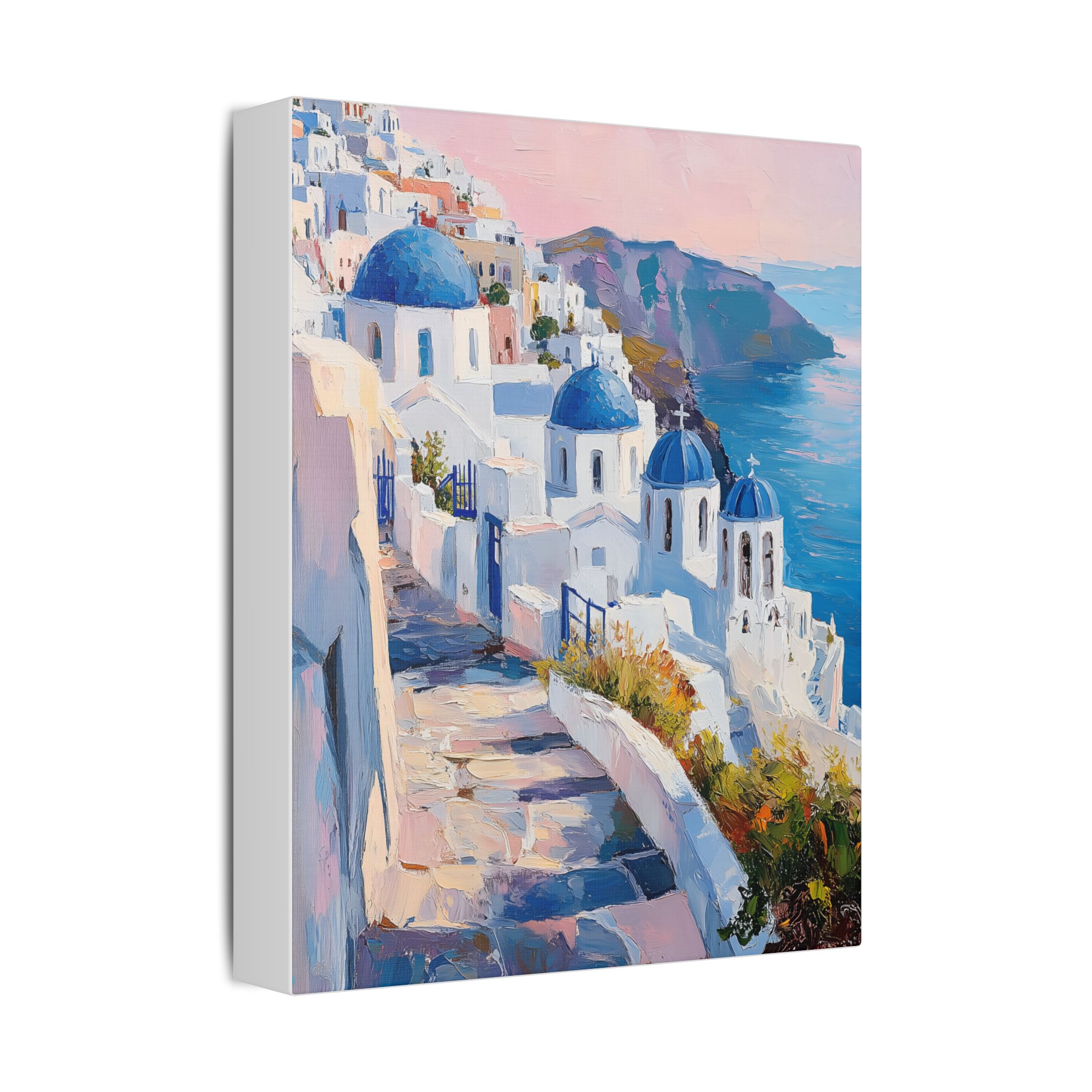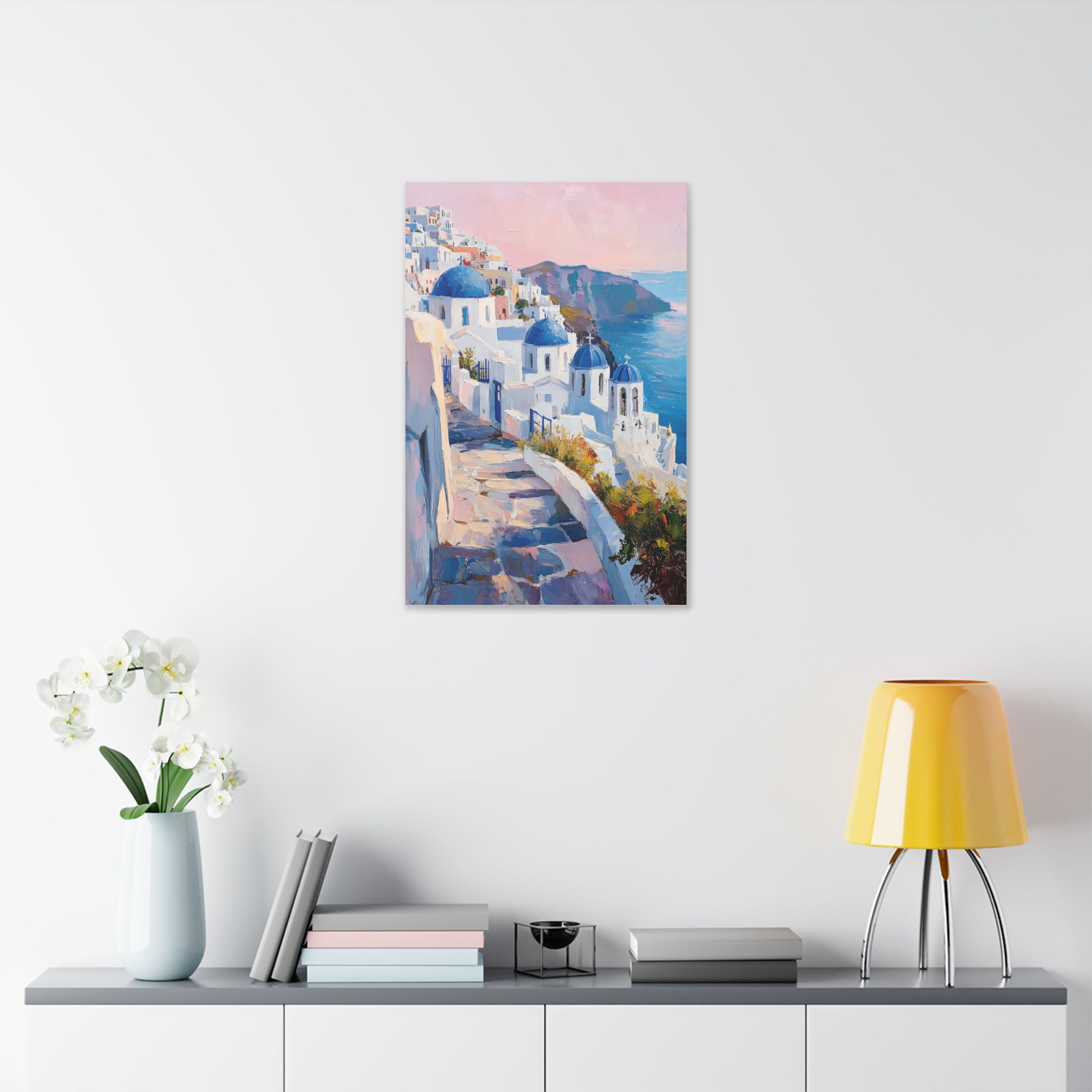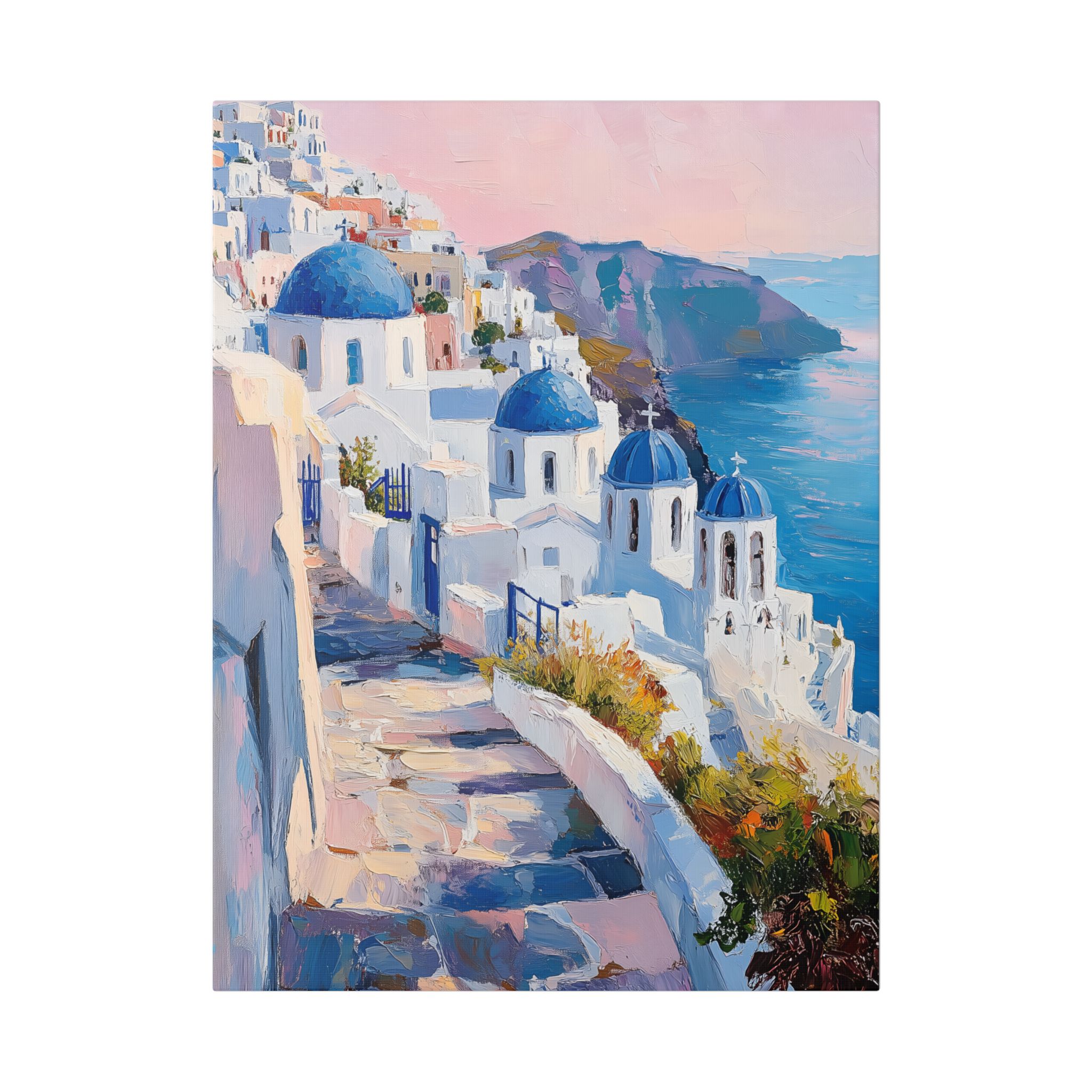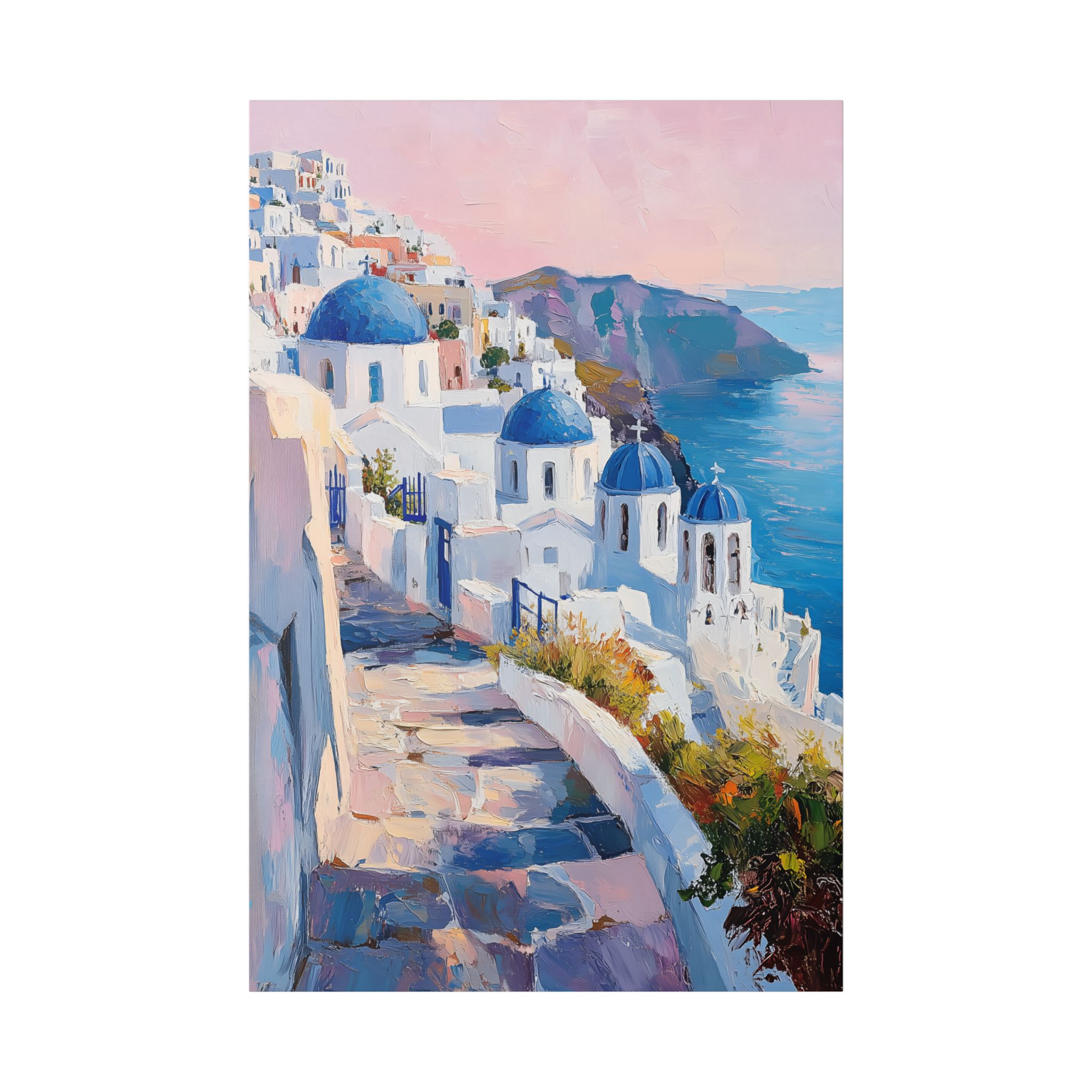 Impression d’art premium Santorini White Village Morning — collection Riviera d’Inkora.