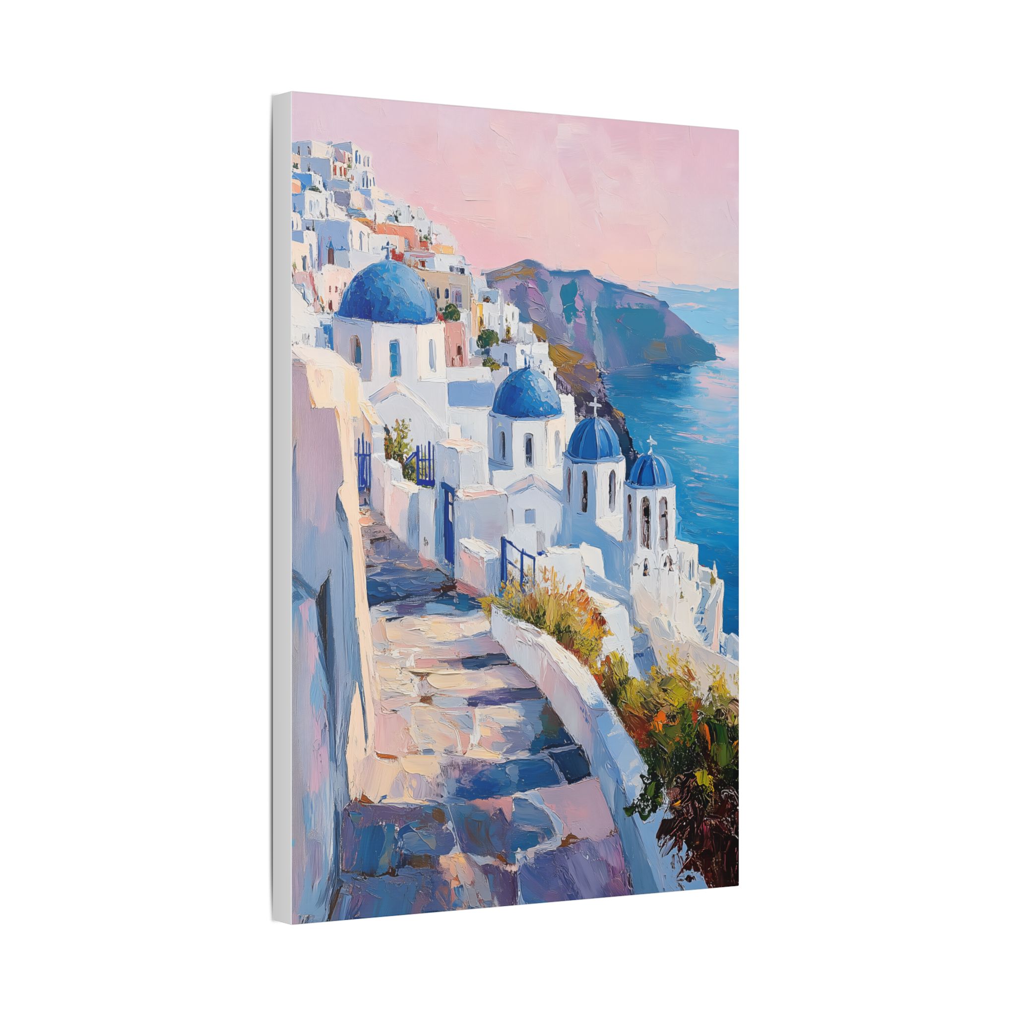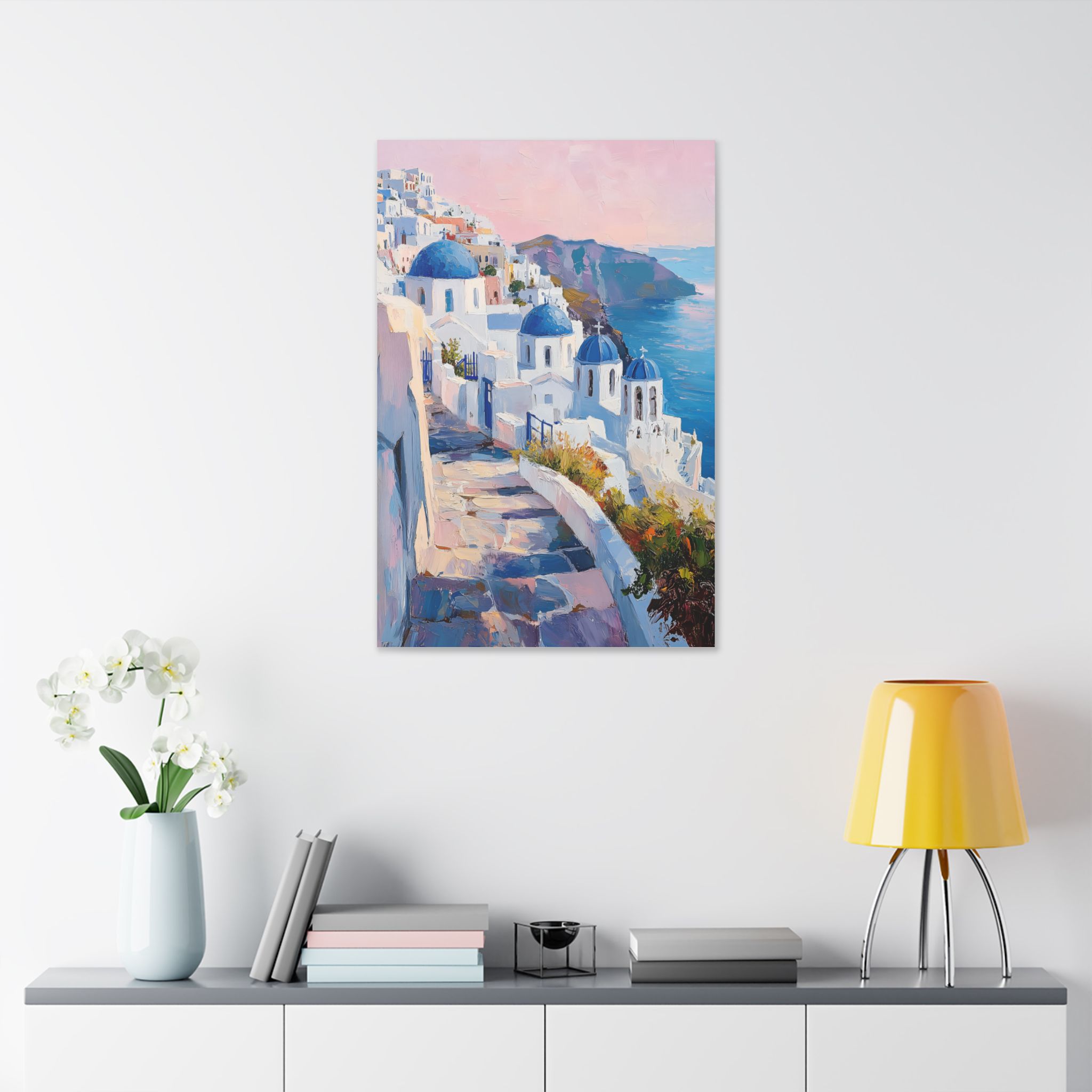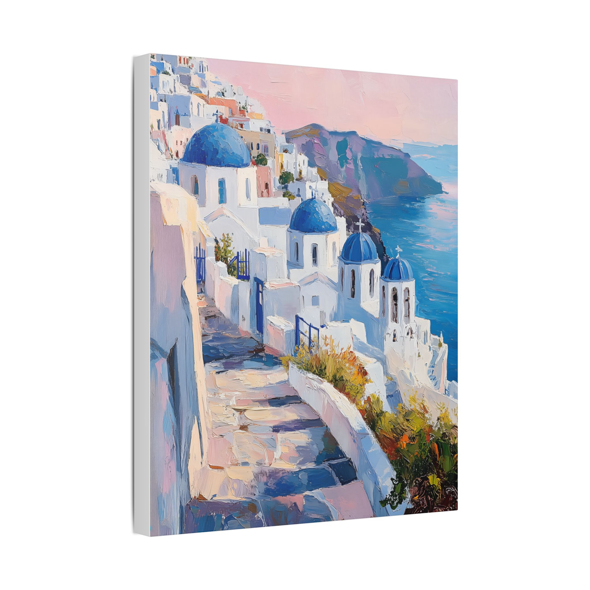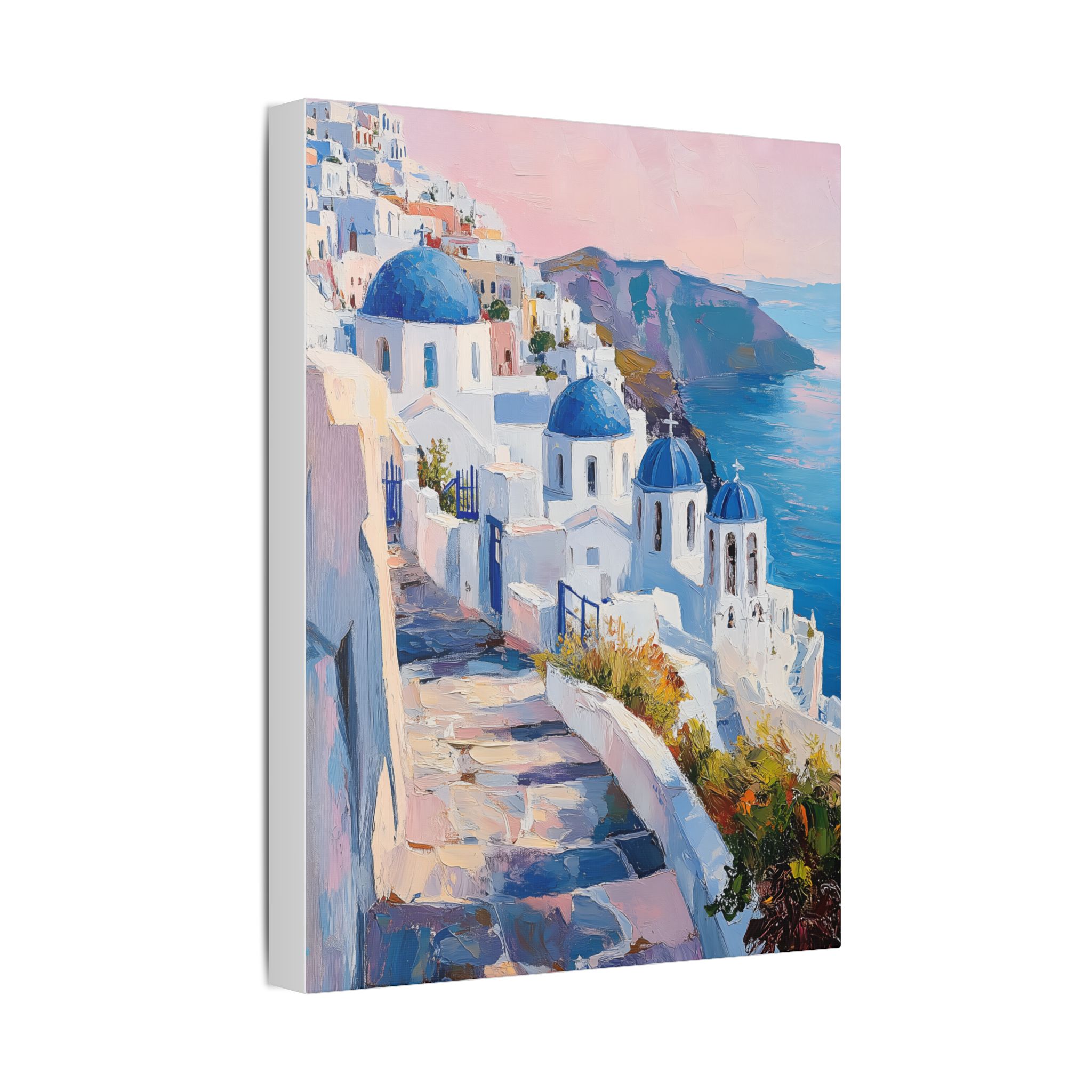 Impression d’art premium Santorini White Village Morning — collection Riviera d’Inkora.