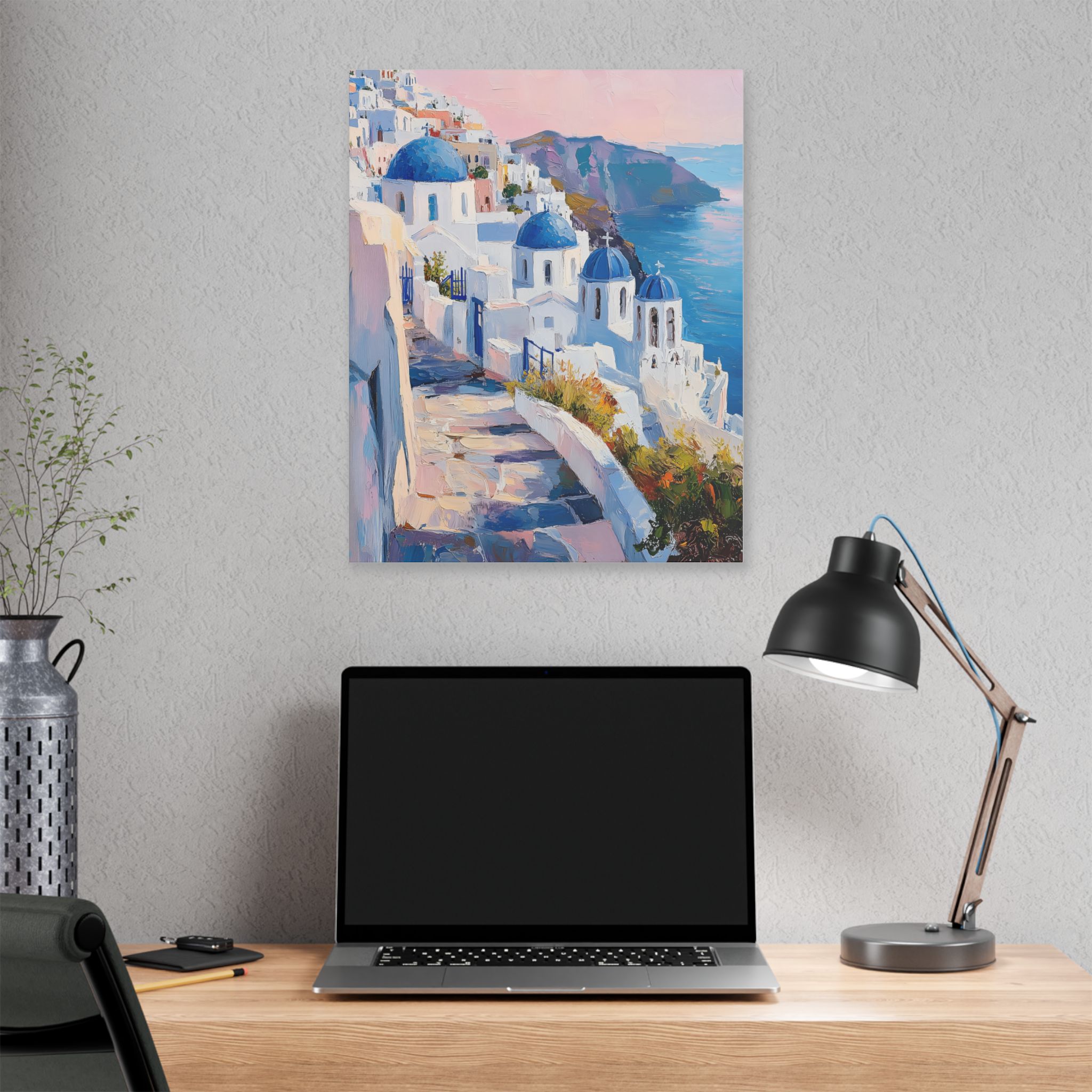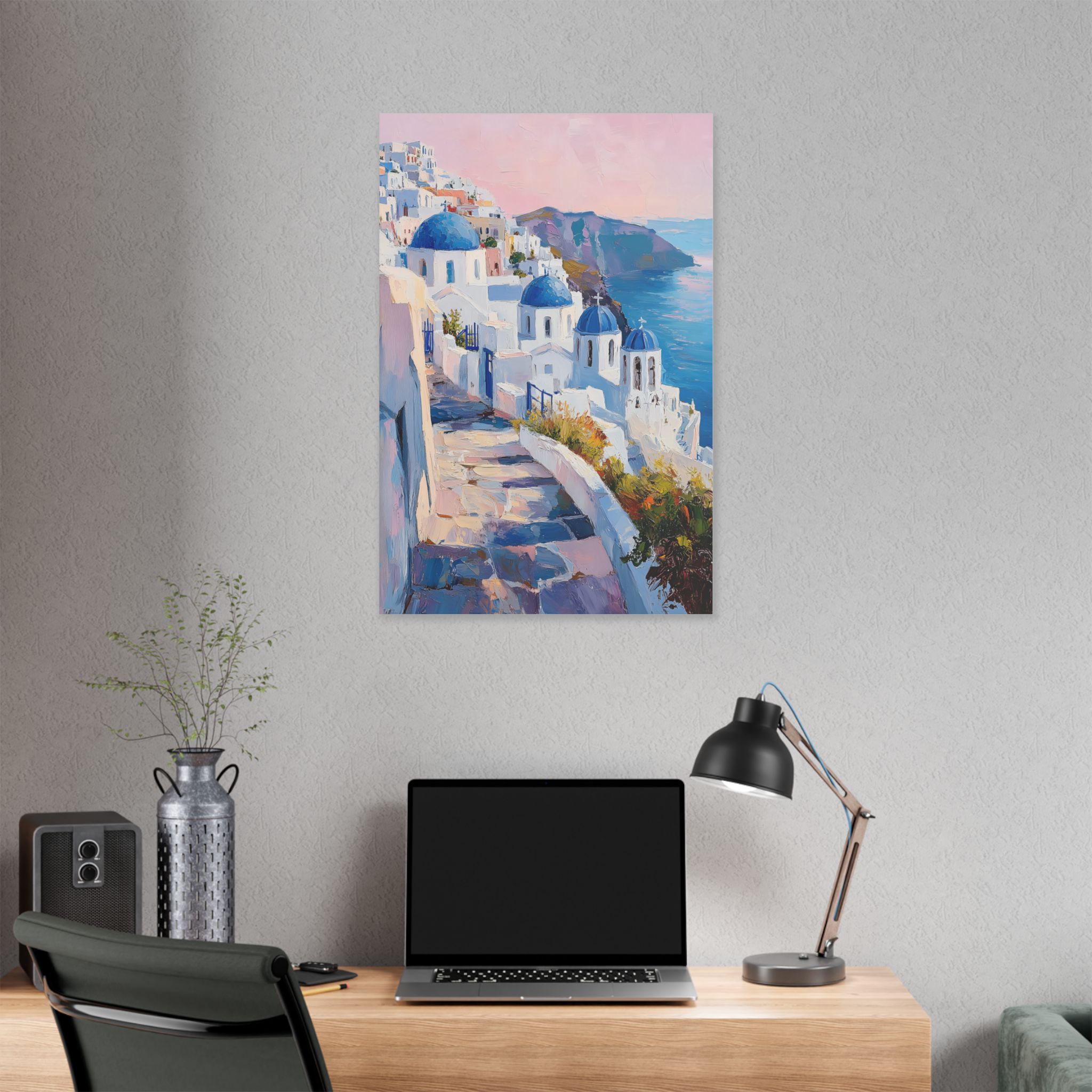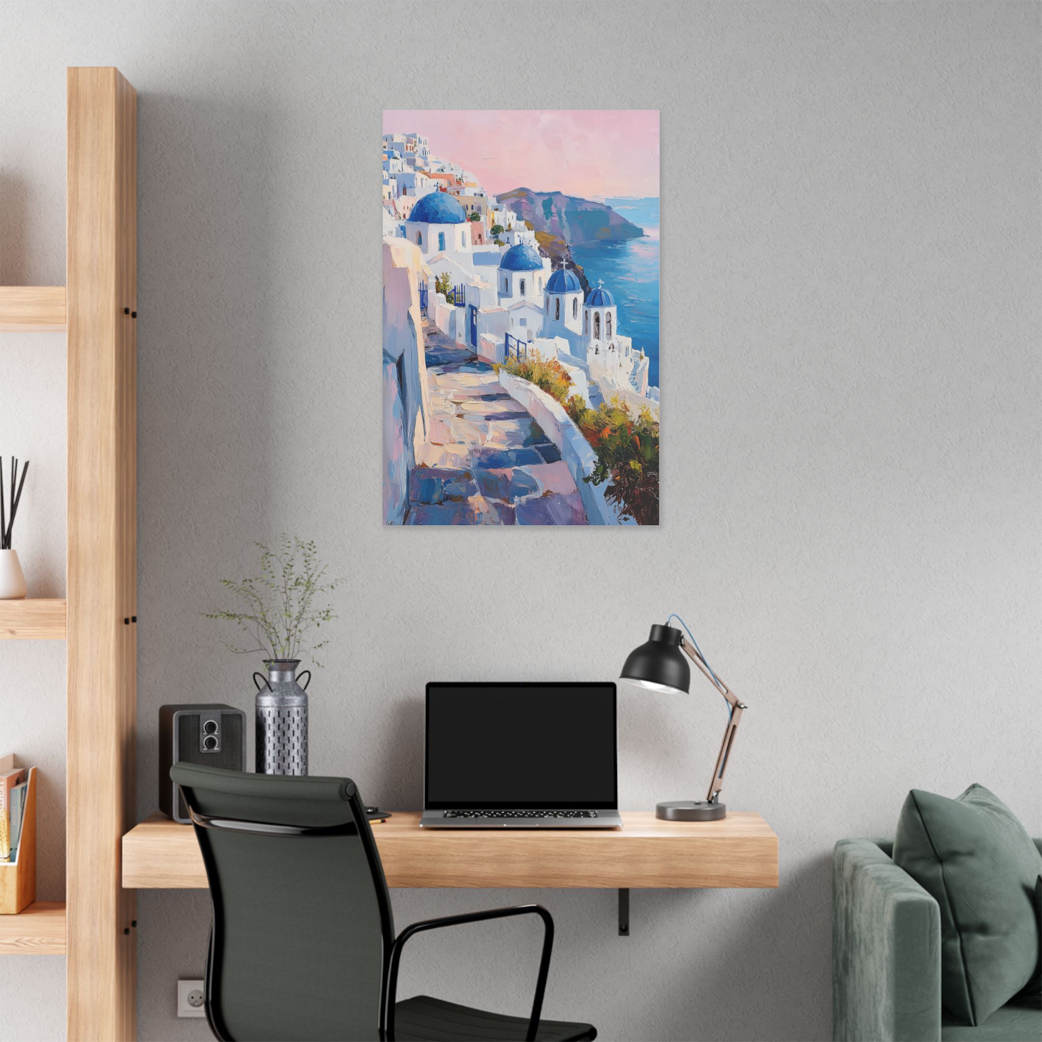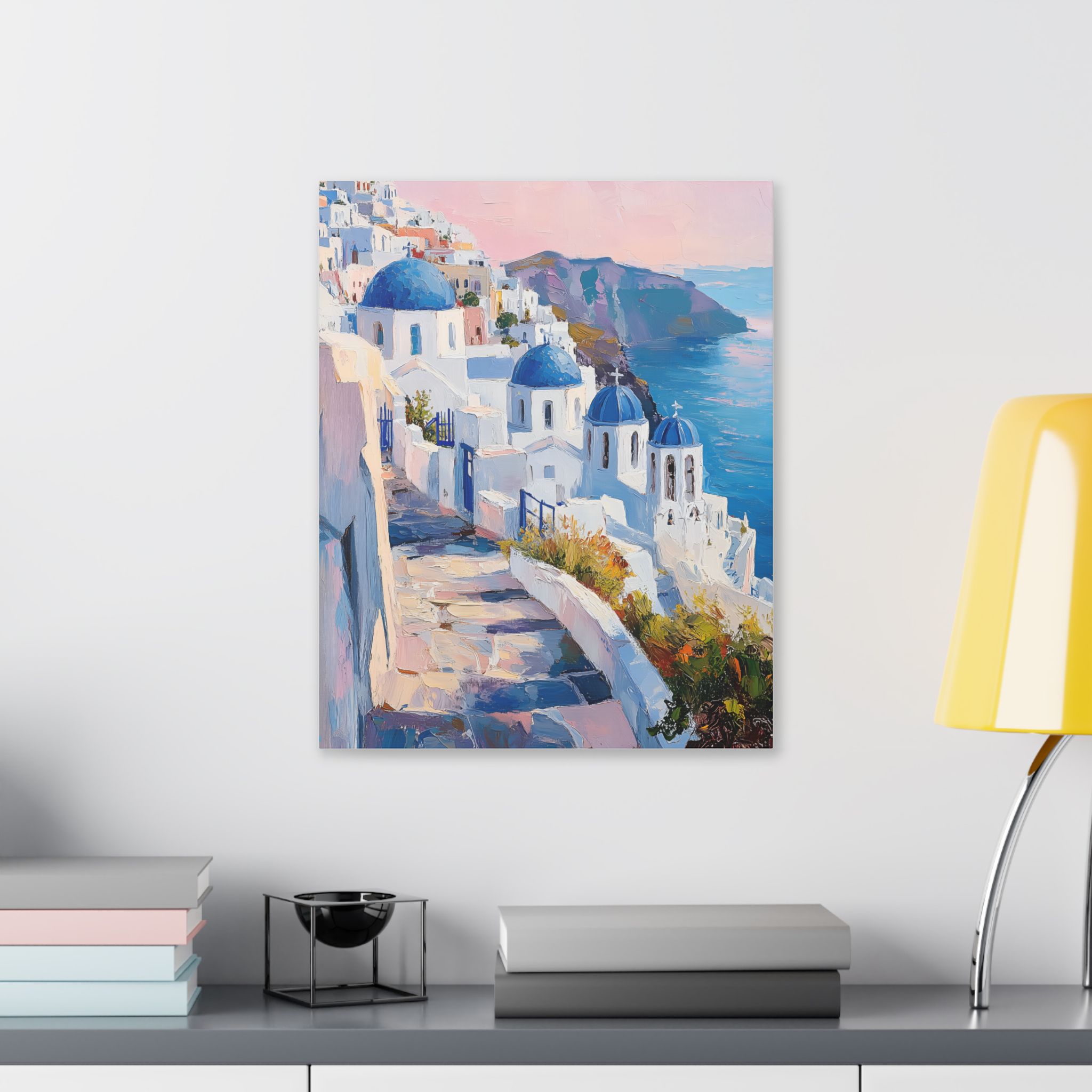 Impression d’art premium Santorini White Village Morning — collection Riviera d’Inkora.
